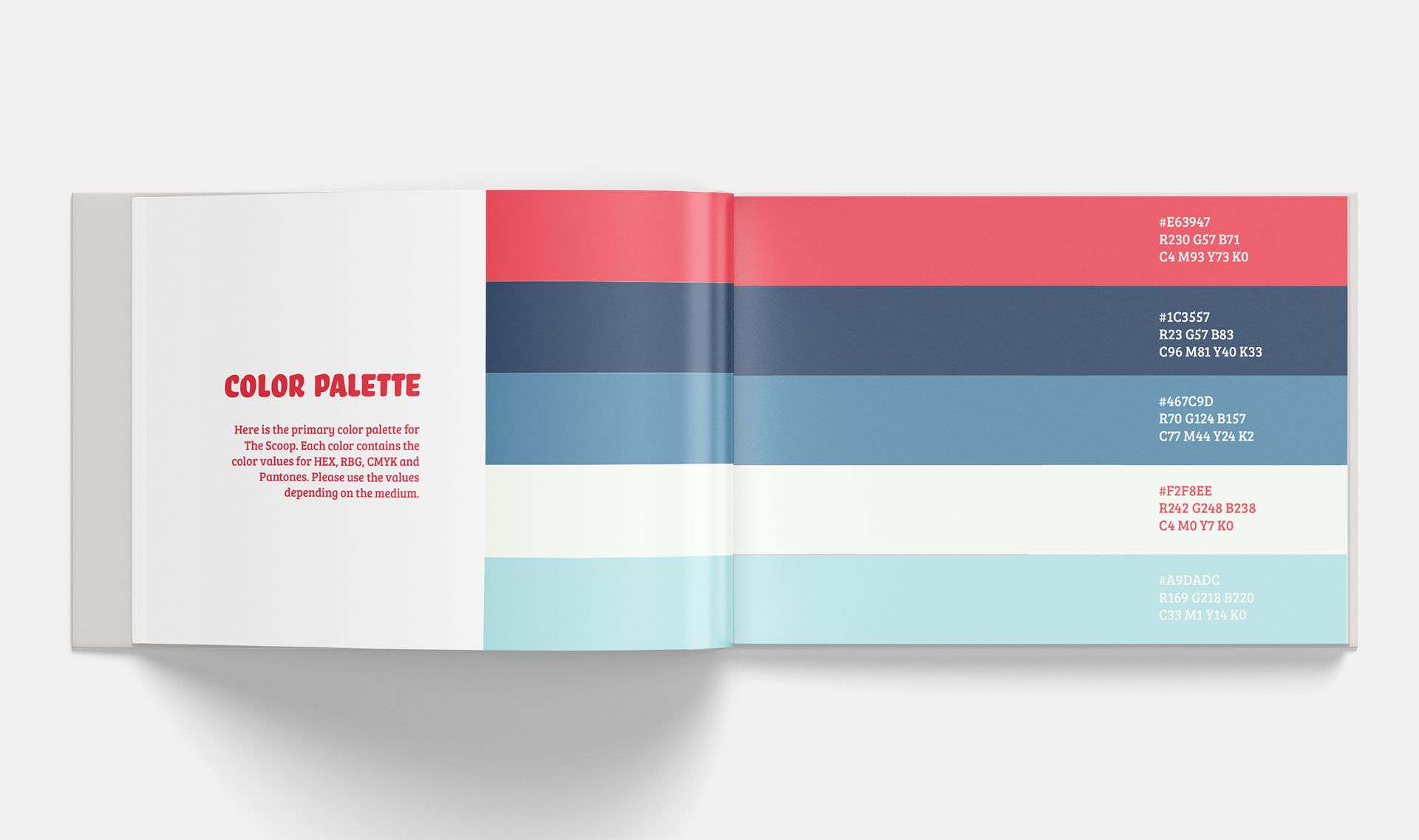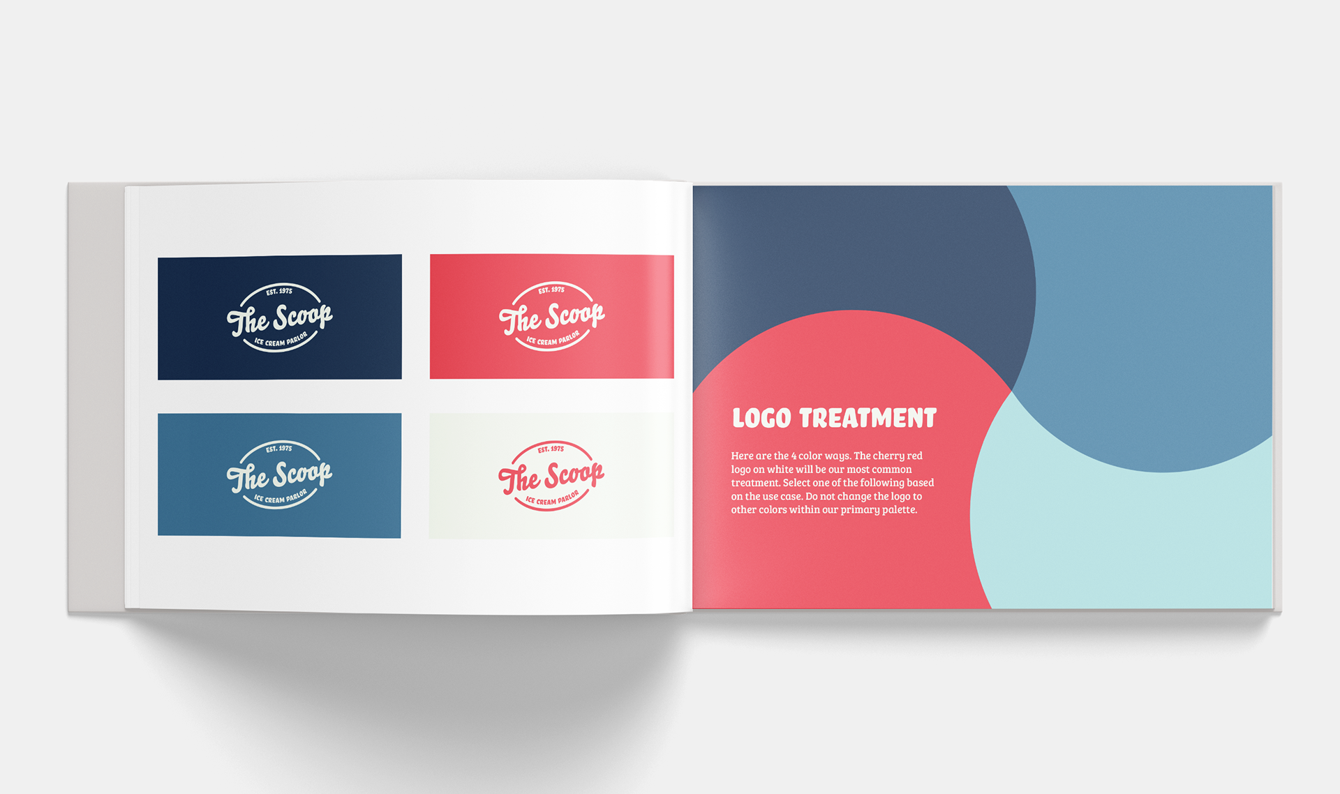 The Scoop is a small, lively ice cream shop located in the heart of Charleston, South Carolina. Its brand guidebook illustrates the guidelines consistent and professional standard that are emphasized throughout the brand's identity.